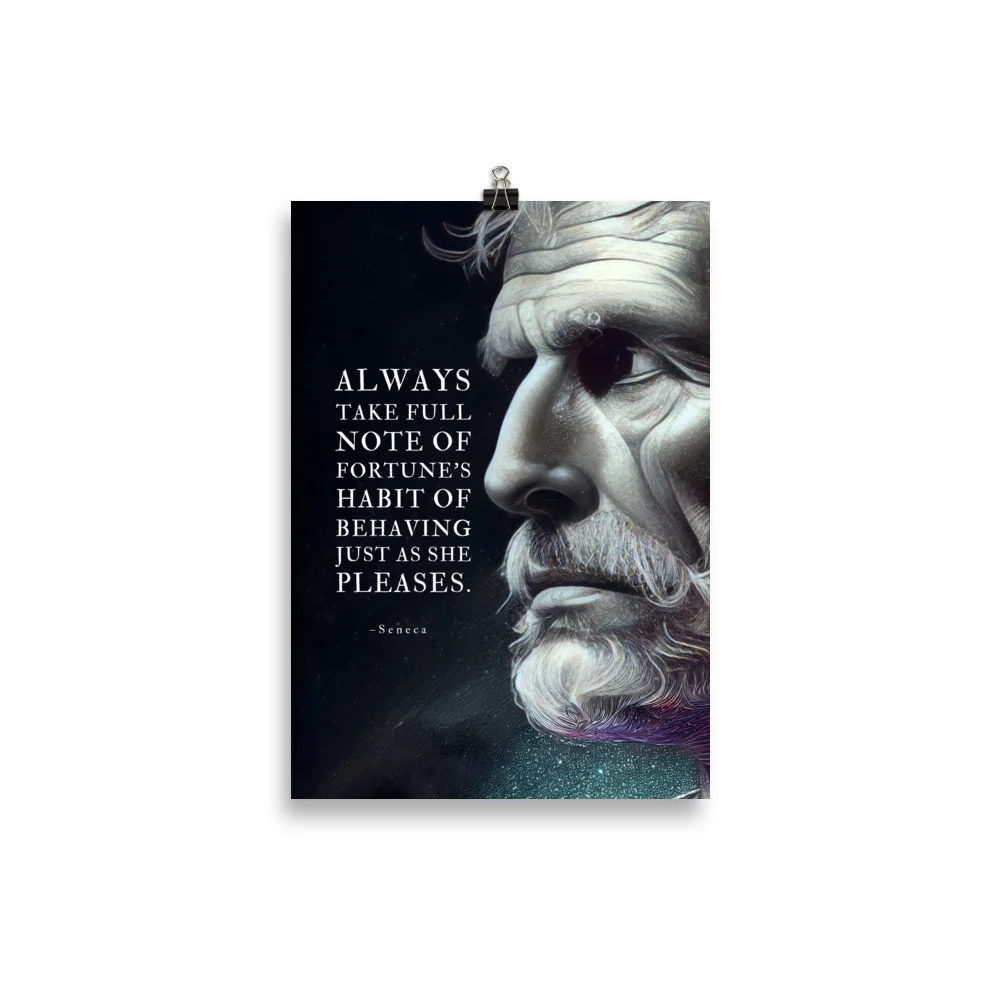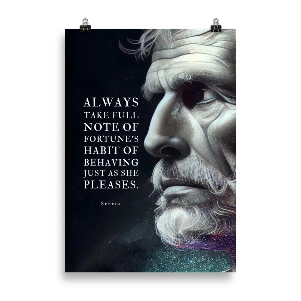 The insightful phrase “Always Take Full Note Of Fortune’s Habit Of Behaving Just As She Pleases” is presented.